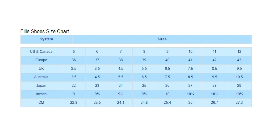 - US Sizing