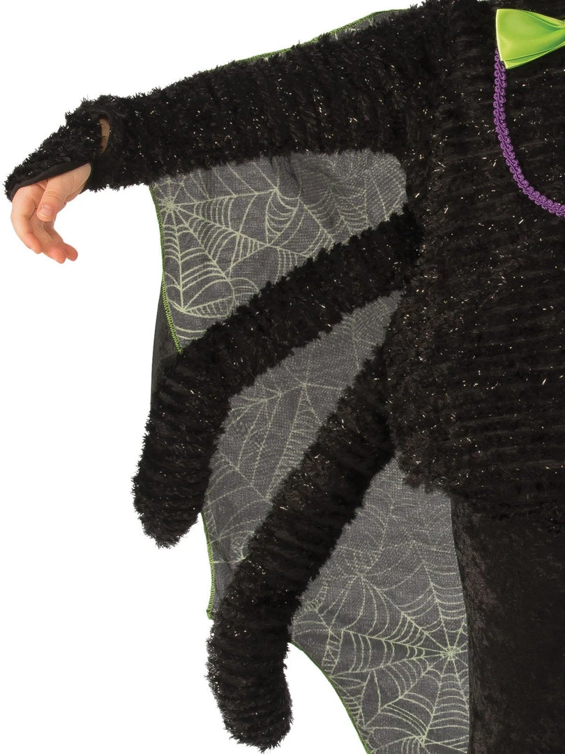 - Cape is printed with green spider web detail. Shoes not included