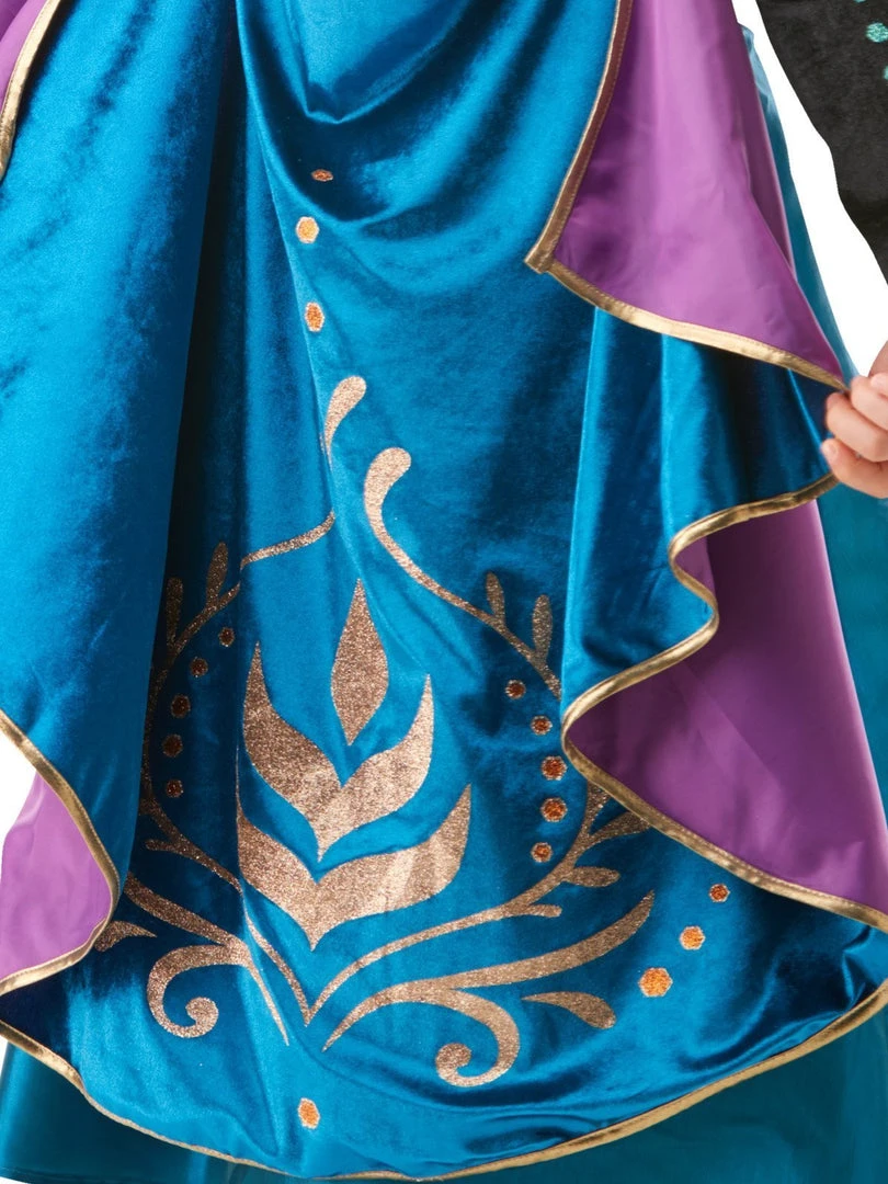 - Luxurious detachable velour two-tone cloak has satin lining and a gold trim border. The cloak features a large glittery wheat design in gold and bronze tones and attaches to the dress with two velcro tabs at the front of the shoulders